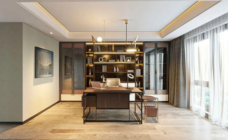 衣帽间充分将生活中的“简”融入到设计中,一眼便可望尽的小隔间,把生活中的便利藏进了每个小细节里。舒适的拼接配色,演绎了意式极简里的高端与奢华,温暖的灯光点缀,衬托出温馨的更衣氛围,让你拥有丰富多彩的着衣体验。