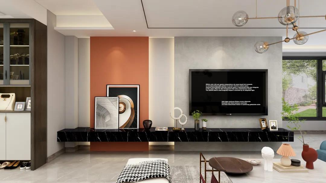 窗外的阳光使得客厅空间更加明亮宽敞。电视墙精致的线条设计,令空间更具层次感。亮眼的爱马仕橙,搭配个性的抽象挂画又让整个墙面更加丰富。活力与沉稳融合,给平凡而枯燥的生活增添些许希望与美好。