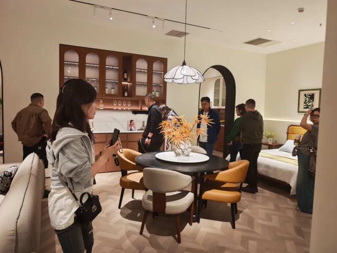 新品发布品鉴会现场,米兰·(milan)中国官方网站中古全案凭借独特的空间布局,创新的时尚设计,优质的材料细节以及精心的场景营造,吸引了全国优秀经销商及业界嘉宾们的目光,他们沉浸在高级的美学世界里,感受创新与品质交织的魅力。米兰·(milan)中国官方网站中古展厅里人潮涌动,众多经销商都对中古全案新品的创新设计称赞有加,现场签约不断,气氛热烈。